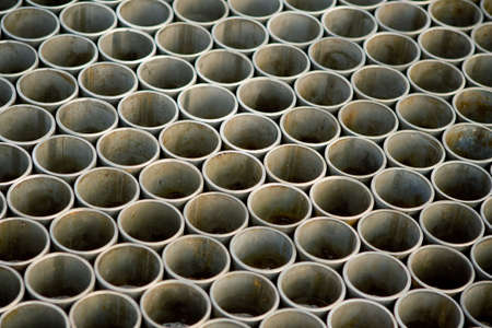 Blurred cardboard sleeves for fireworks. Tubes for pyrotechnics. Cardboard salute launcher barrel. Selective focus