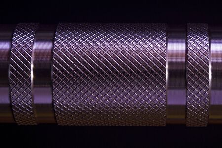dark industrial background with cnc machined shiny steel pipes - selective focus and lens blur tech