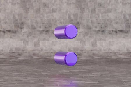 Violet 3d colon symbol. Glossy indigo sign on tile background. Metallic alphabet with studio light reflections. 3d rendered font character.