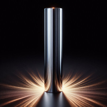 Title: showing title: three identical dark gray cylinders with glowing white tops on gradient blue background. resolution use.