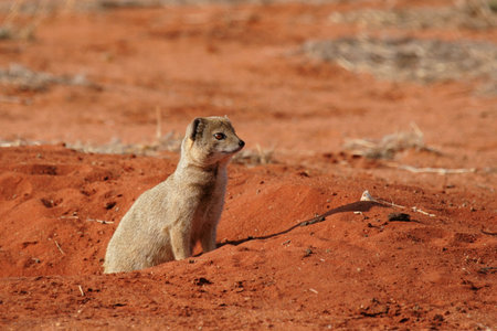 Yellow Mongoose (Mongoose) in Kalahari desert, South Africa