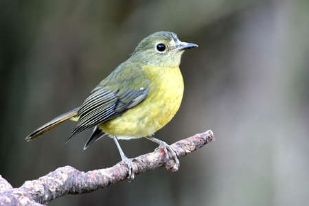 Macro shot of a beautiful yellow-bellied starling (Ficedula hypoleuca)