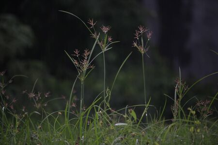 Cyperus Acuminatuss (coco-grass, Java grass, nut grass, purple nut sedge, purple nutsedge, red nut sedge, Khmer kravanh chruk, rumput teki) with natural background