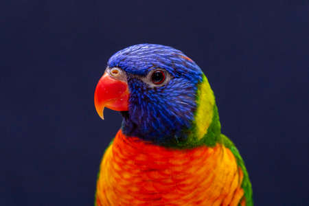 Bright multi-colored bird. Unusual birds with multi-colored rainbow feathers. Paradise tropical birds.