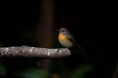 Red-throated Flycatcher (Ficedula albicilla) on the branches in tropical forest, Thailand