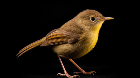 Small yellow bird standing on black surface. Suitable for nature and wildlife themes.
