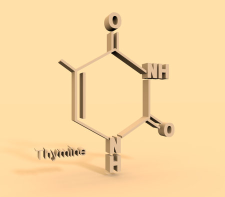 Structural formula of thymine molecule. Medicine concept. 3D rendering