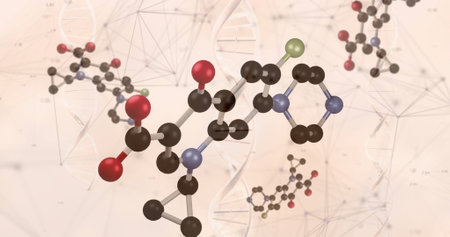 Stunning visual representation of molecular structures depicting organic compounds, showcasing atoms and bonds in a detailed and colorful arrangement for scientific purposes.