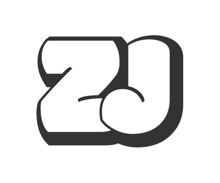 ZJ logo, bubble comic lettering, rounded in graffiti style black and white silhouette. Trendy preschool Z and J letter text for festival party, personal initials, children funky print and web. Vector illustration.
