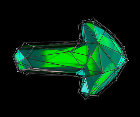 Arrow made in low poly style green color isolated on black background. 3d rendering