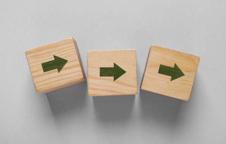 wooden cubes with the direction of following the winding arrow. concept towards success