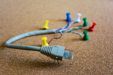LAN network connection ethernet red cables on white