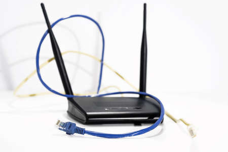 Modern wi-fi router and internet cable
