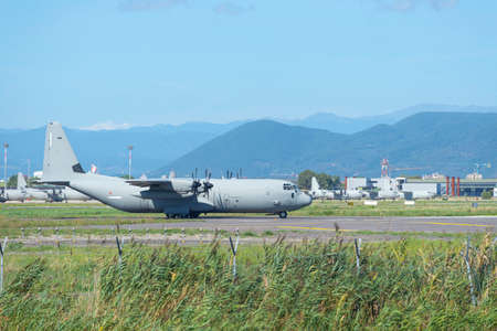 ISTANBUL, TURKEY - SEPTEMBER 23, 2018: Lockheed C-130 Hercules in Teknofest Istanbul Aeronautics, Space and Technology Festival