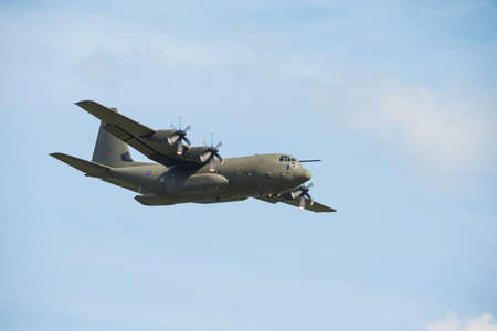 Duxford,UK - 25 May 2014: An RAF Hercules flying at Duxford D-Day Airshow