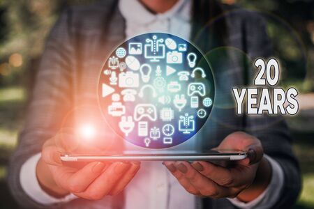 Conceptual hand writing showing 20 Years. Concept meaning Remembering or honoring special day for being 20 years in existence