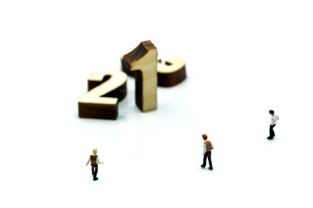 Miniature people : Businessman and team with wooden number of 1,2,3 , to be the first,business competition concept.