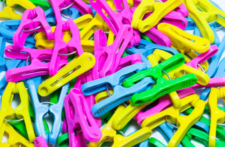 decorative clips in different colors for washing laundry isolated from the background.