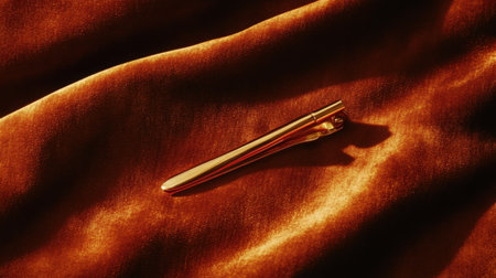 A polished gold writing instrument rests elegantly on soft golden fabric, showcasing rich colors and textures. The artistic arrangement highlights luxury and sophistication.