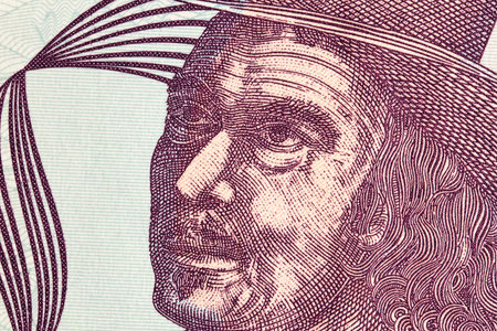 Melchor Perez de Holguin a closeup portrait from Bolivian money - Boliviano