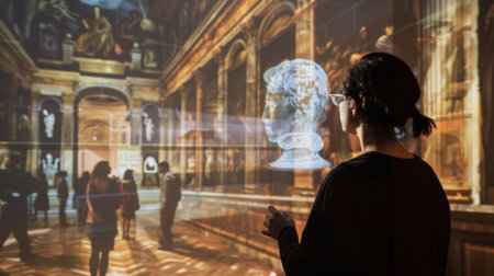 An AR portal allowing visitors to step into a famous artwork or historical scene
