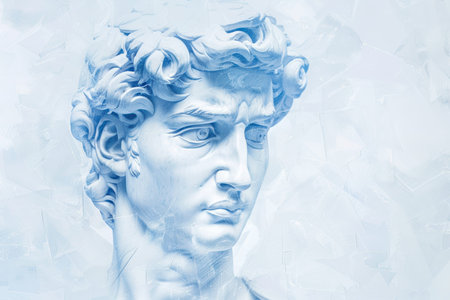 David's bust on gray background with long shadow. Minimal still life