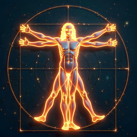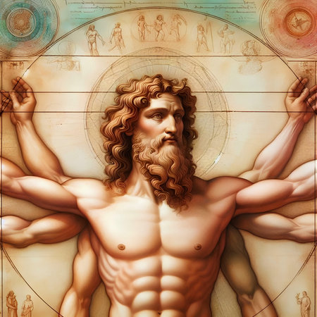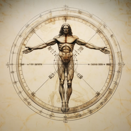 Unveiling perfection: timeless allure of vitruvian man, Leonardo da Vinci's iconic representation of human proportions, symmetry, harmonious intersection of art and science in renaissance brilliance