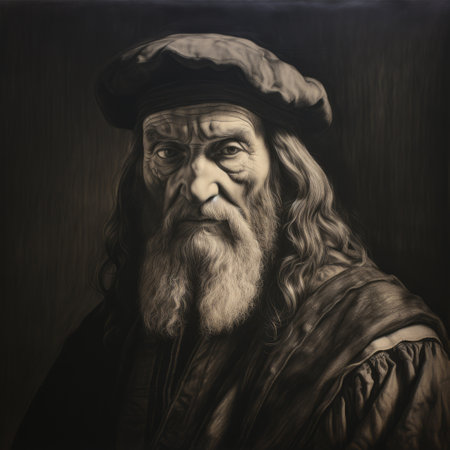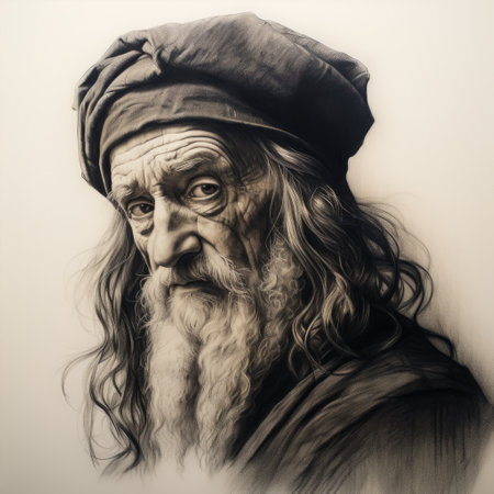 a mesmerizing portrait of richard, reminiscent of leonardo da vinci's charcoal drawings. the meticulous strokes capture the depth and wrinkles of his weathered face, showcasing the mastery of chiaroscuro. the intensity of his gaze and subtle shading bring the drawing to life, evoking a sense of timelessness and wisdom. against a simple, monochromatic background, the intricate details of the subject take center stage. ai generated