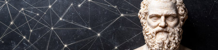 ancient philosopher bust against starry night sky