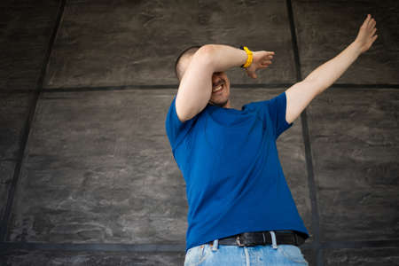 Hipster man in dab dance pose portrait.