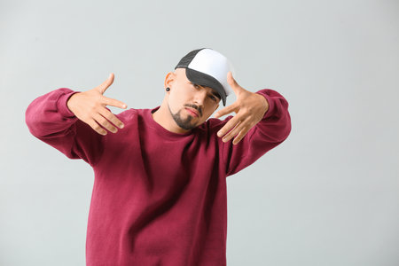 Male hip-hop dancer on gray background