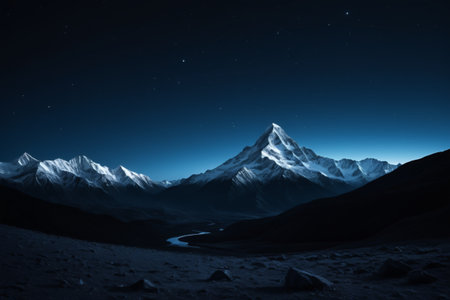 Mountain, illuminated by a starry sky, captivates the imagination deeply and profoundly. Generative AI