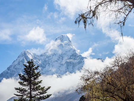 Landscape in the Everest National Park, Nepal. Mount Ama Dablam and clouds.