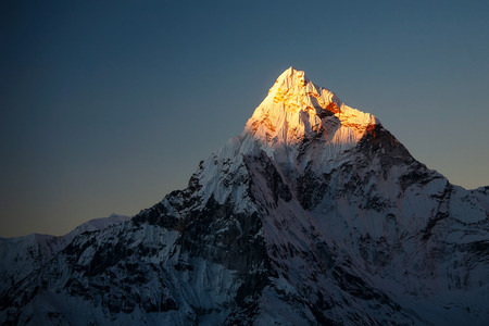 Ama Dablam peak at sunset.
