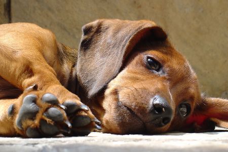 dachshund puppy kennel stone background