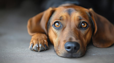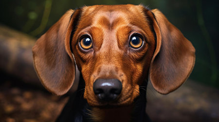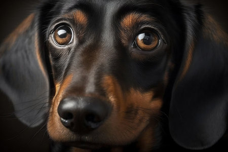 A close-up portrait of a dachshund's face. Generative AI