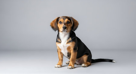 Cute dog sitting on white background and looking at the camera.
