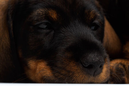 close up Dachshund puppy on white background