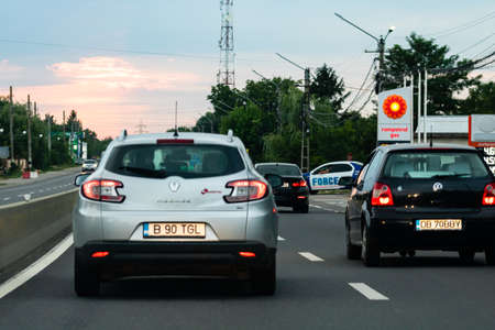 Car traffic at rush hour. Car pollution, car on the road in Bucharest, Romania, 2022