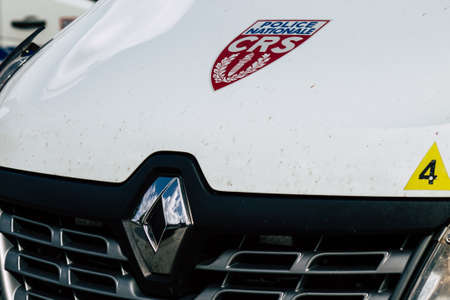 Paris France May 11, 2019 View of cars of the French National Police in intervention during protests of the Yellow Jackets against the policy of President Macron in Paris on saturday afternoon