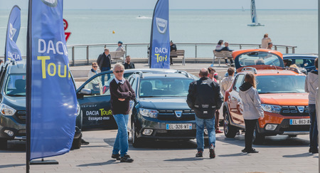 Sables d Olonne, France - May 07, 2017: Dacia Tour 2017 is a commercial operation organized by the car builder in order to present its cars throughout France - General plan of the event