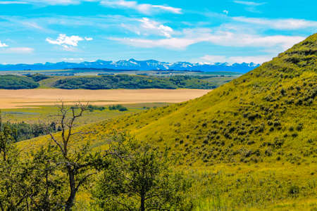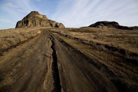 Steep mountain cliffs near Fort MacLeod, Alberta, Canada