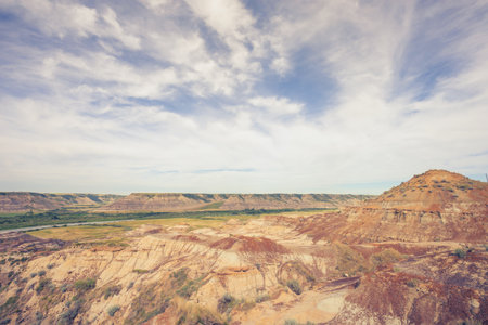 Landscape of a dramatic sky over the Badlands of Drumheller, Alberta, Canada