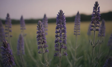 Lavender flowers in the field at sunset. Soft focus.