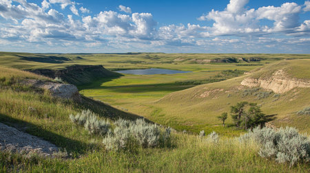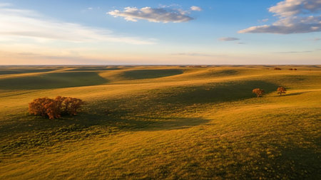 Scenic Aerial view of Dakota Prairie Grasslands at sunset