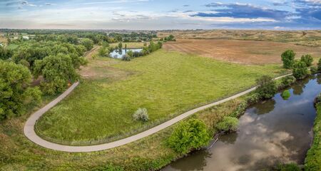 aerial panorama of Poudre River Trail bear Windsor, Colorado - a paved bike trail extending for more than 20 miles between Timnath and Greeley