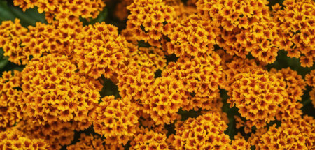 Background of bright yellow flowers. Top view. Floral pattern.