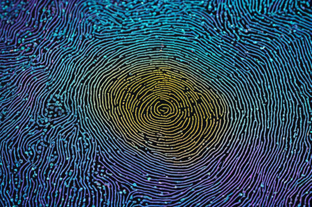 An intricate pattern of ridges and valleys emerges vividly against a deep, shadowed backdrop, revealing the uniqueness of human identity.