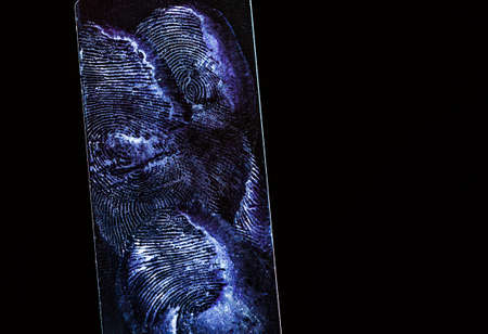 Close-up of fingerprint texture on glass, highlighting fine details for forensic or security concepts
