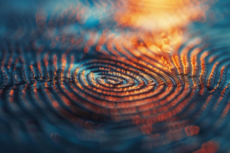 This artistic close-up captures a vibrant fingerprint pattern with swirling colors and intricate details, showcasing unique textures and lighting effects.